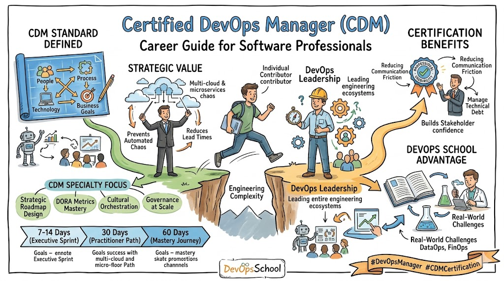 1. What makes CDM different from a DevOps Engineer certification? The CDM focuses on ROI, budgeting, hiring, and culture—skills that an engineer’s certification usually skips in favor of syntax and configuration.